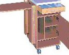 - zvýšený okraj odkladacej dosky, bezpečnostné úchytky , kolieska plastové, brzditeľné